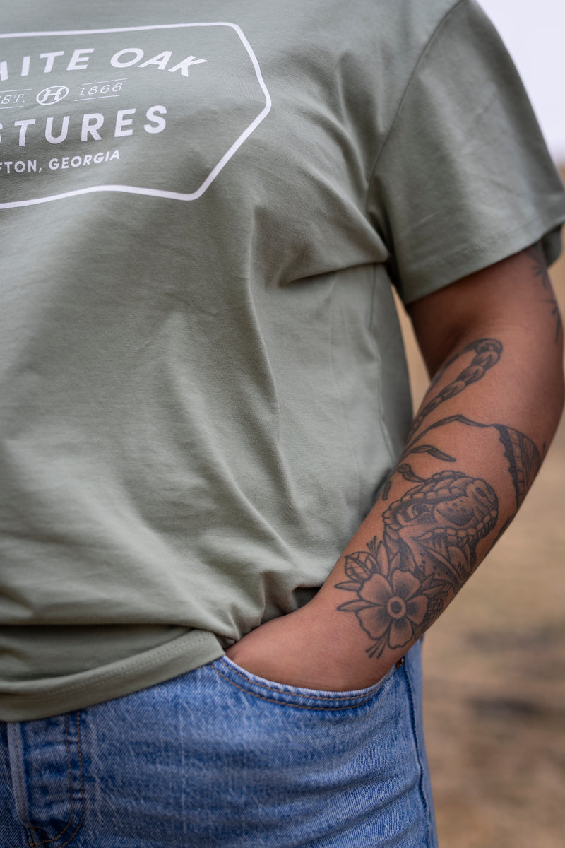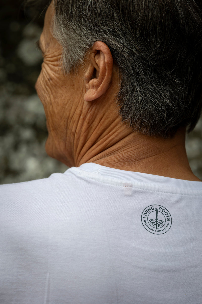 Our tees are made in India from Regenerative Organic Certified® cotton, then shipped to our U.S. screen-printing partner for customization.